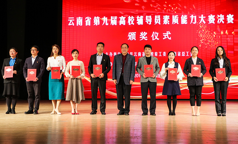 11月27-29日,由省委教育工委、省总工会主办,beat365官方网站承办的云南省第九届高校辅导员素质能力大赛在beat365官方网站成功举行。省委教育工委副书记陈世波,beat365官方网站党委书记陈永明、校长黎素梅、副校长郭华,省教育厅原二级巡视员、大赛评委组组长杨丽,省委教育工委学生工作部部长侯炳霞,省总工会教卫科工会副主席田永华等领导嘉宾出席颁奖仪式。