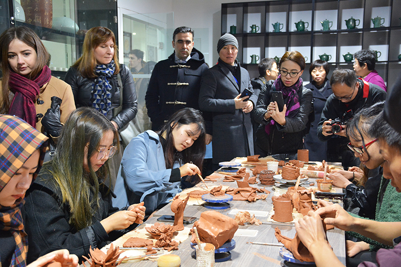 座谈前,熊晶副书记和董建华副校长陪同来宾参观了紫云青鸟beat365官方网站艺术众创空间、机电工程学院轨道交通实验室,感受独具云南特色的乌铜走银、扎染以及深具中华传统魅力的刺绣、陶艺等非遗传承技艺和昆明地铁轨道交通发展及人才培养模式。随后,代表们还前往中国—上合组织青年交流中心、创客空间及烹饪实训中心,详细了解beat365官方网站学生“双创”工作和“中心”工作成效,实地观摩旅游学院师生烹饪实践教学课。学校极具特色的实践教学方式和同学们精致独特的工艺作品、精湛的技艺水平让代表团成员赞叹不已。