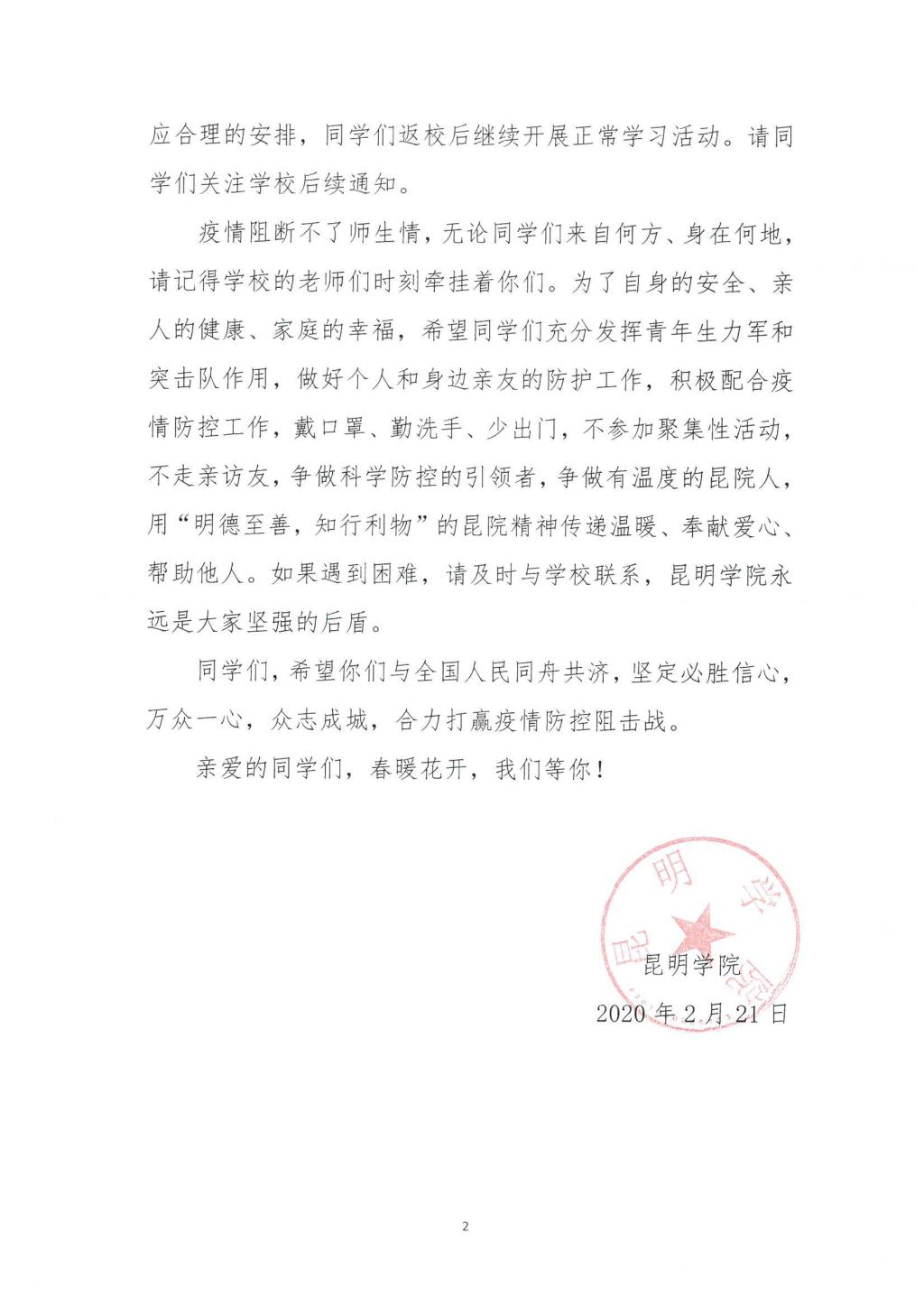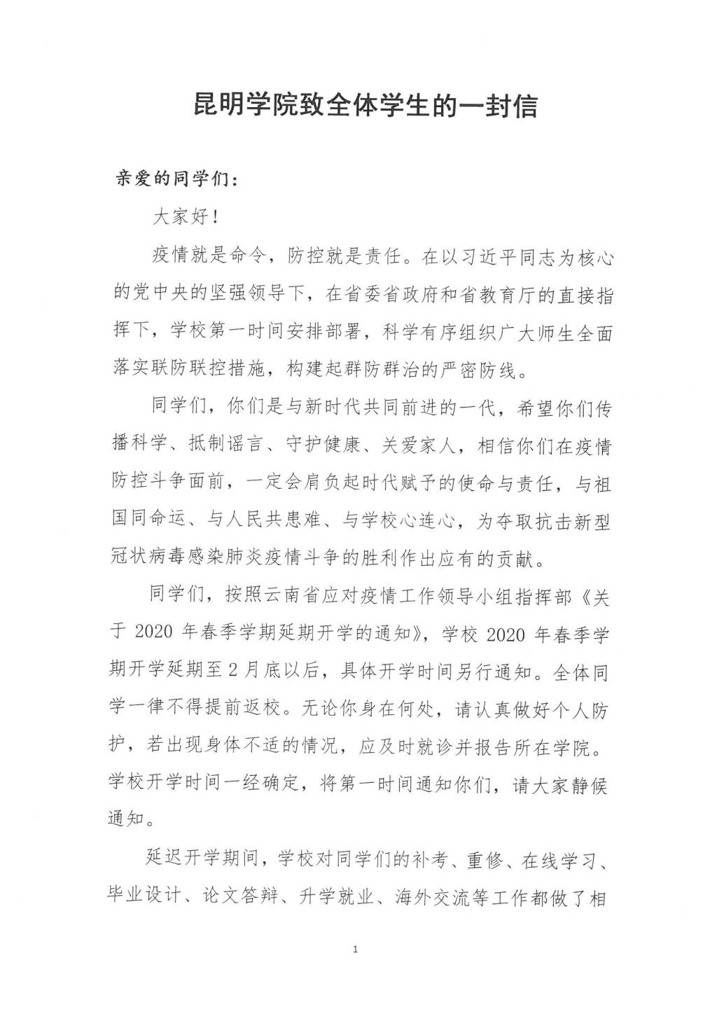 【昆院战“疫”】beat365官方网站致全体学生的一封信