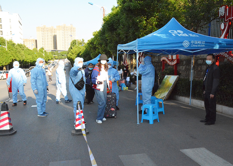 7点50分,美术与艺术设计学院产品设计专业学生熊瑶同学来到学校南门报到点,成为返校的第一个学生。返校学生在工作人员的引导下,消毒、检测体温、核验云南健康码、国务院行程码、今日校园码和个人防控义务告知书、个人健康信息排查表“三码一书一表”等信息,完成报到后乘校园直达车到宿舍区办理入住手续,实现安全返校。熊瑶同学说,看到学校的大门就觉得亲切,学校还是一样的朝气蓬勃,老师们也依旧和蔼可亲,走在校园里很有归属感,回到学校很开心、很放心,爱您:beat365官方网站。