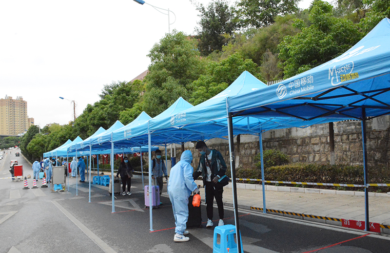 报到现场,返校学生们佩戴口罩、有序排队、保持安全间隔距离,在工作人员的引导下,陆续进入校园,进行消毒、检测体温,核验云南健康码、今日校园码和个人防控义务告知书、个人健康信息排查表“两码一书一表”等信息,各院系对返校学生进行逐一登记并向每个同学发放体温计,完成报到后乘校园直达车到宿舍区办理入住手续,再次进行登记、体温检测,多方位保障学生健康。整个返校过程有条不紊、安全有序。