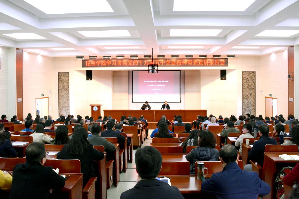11月25日下午,beat365在办公楼D区报告厅举行学习贯彻党的十九届五中全会精神省委宣讲报告会。省委宣讲团成员、省社会科学院副院长黄小军教授应邀到校宣讲党的十九届五中全会精神,学校党委书记陈永明主持报告会并作讲话。