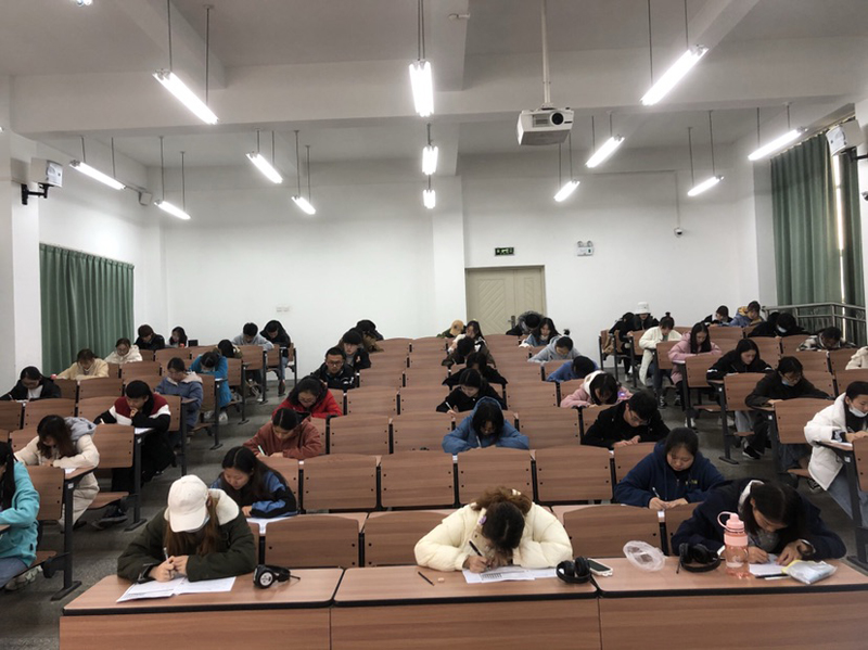 12月5日,校学生会主办的“团团带你过四级”四六级全真模考在博雅楼顺利举行,共1000余名同学参加此次模考。