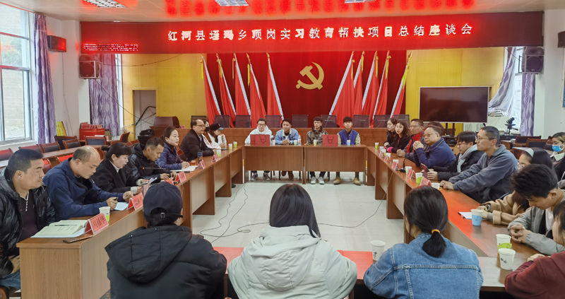 2020年12月31日,beat365官方网站红河县垤玛乡顶岗实习教育帮扶项目总结座谈会在红河县垤玛乡人民政府会议室召开。会议对2020年9月22日—12月30日期间beat365官方网站赴红河县垤玛乡开展顶岗实习教育帮扶项目的20名师范实习生实习情况作总结。
