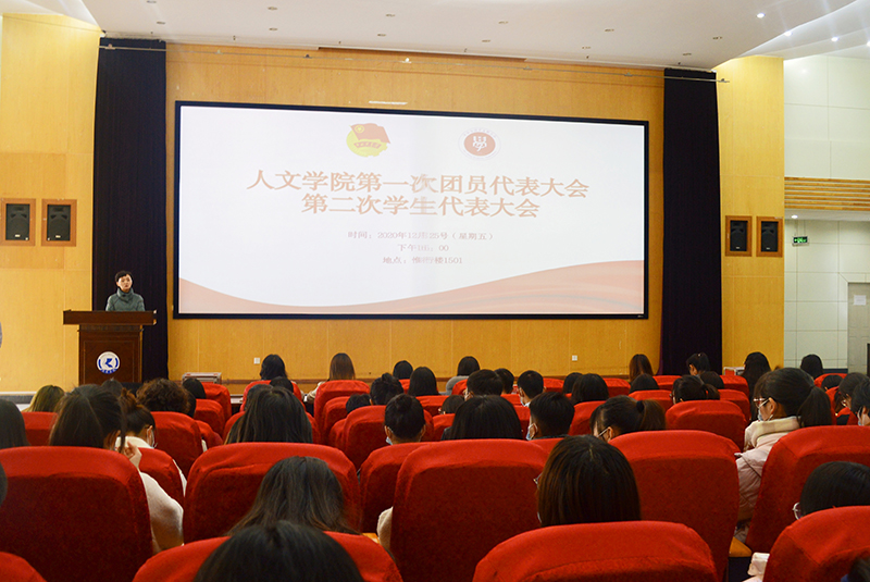 12月25日,人文学院第一次团员代表大会、第二次学生代表大会在惟行楼1501举行。人文学院党委书记何杰出席大会并讲话,人文学院吴雨珂老师、130名团员代表,149名学生代表参加本次大会,学生会主席杨雨飞担任大会主持人。
