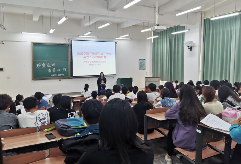 为丰富广大同学的课余生活,关注心理健康,提高同学们的心理素质,为同学们提供一个舞台来表达自己真实的内心感受,再现学生的生活、学习和交往中的冲突、烦恼和困惑。4月30日,旅游学院在博雅楼2104教室举办以“珍爱生命,青春战役”为主题的beat365官方网站第十三届大学生心理情景剧大赛旅游学院初赛。学院副书记刘艳萍和辅导员老师应邀做参赛评委,学院全体心理委员及各参赛班级同学观看了整场比赛。最终2019级烹饪与营养教育3班《解忧交易铺》以92分的高分获得初赛一等奖。
