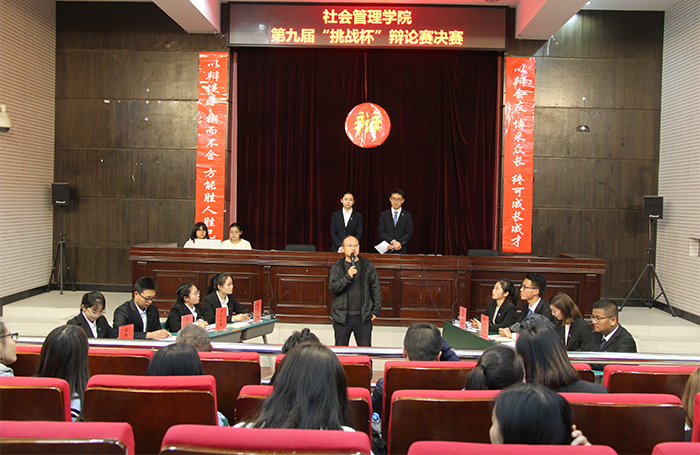 11月29日,社会管理学院第九届“挑战杯”辩论赛决赛在惟真楼模拟法庭圆满落幕。此次比赛邀请我院党政领导担任评委,200余名同学到场观看比赛。