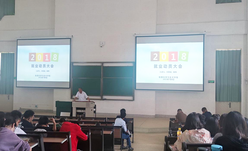 7月8日,物理科学与技术学院在beat365官方网站博雅楼2101召开2022届毕业生就业促进动员大会暨假期安全宣讲会。为确保2022届毕业生顺利开展就业实习和学生假期安全稳定工作夯实基础。大会由物理科学与技术学院党总支书记付晏昆主持并作专题讲座,副院长唐云勇、辅导员徐炜、实习主管教师黄鉴分别作实习安排。2022届全体毕业生参加动员大会。