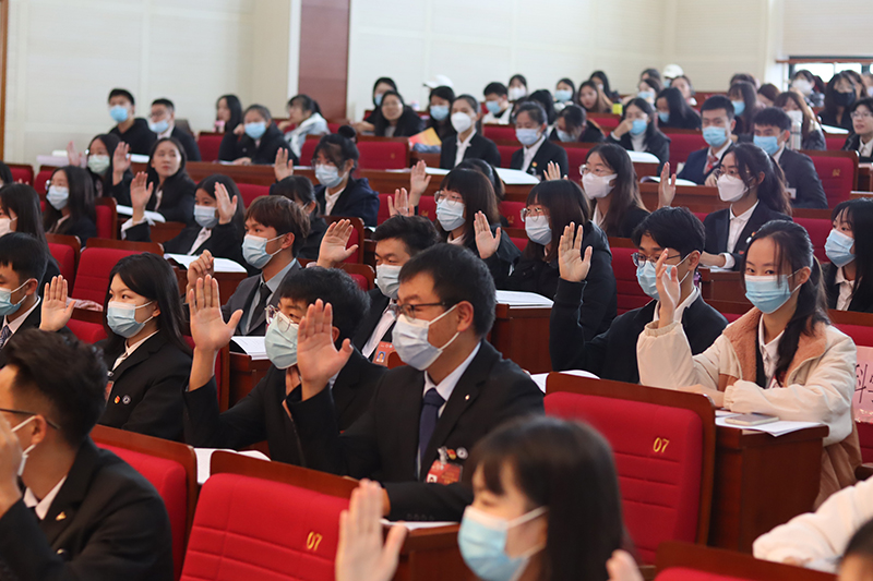 云南省学生联合会驻会主席彭涛致辞表示,作为与新时代同向同行、共同前进的新一代,生逢盛世、肩负重任,一定要加强思想引领,补足精神之钙,积极引导广大同学听党话、跟党走;一定要牢记服务宗旨,践行初心使命,切实发挥好桥梁纽带作用;一定要坚持从严治会,加强作风建设,打造清新阳光的学生会组织。