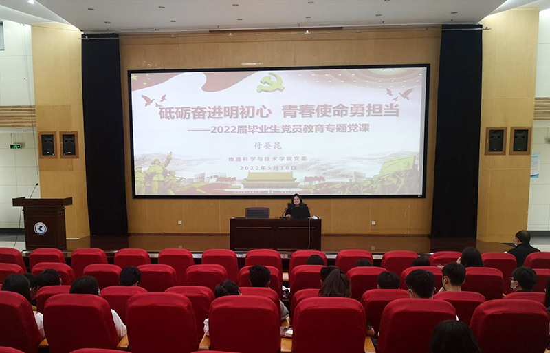 5月10日,为切实做好2022届毕业生党员教育管理服务工作,加强党史学习教育,引导毕业生党员在未来的学习和工作岗位上坚定信念、艰苦奋斗,发挥好党员先锋模范作用,物理科学与技术学院党委书记付晏昆在惟行楼1501作题为“砥砺奋进明初心,青春使命勇担当”的专题党课。