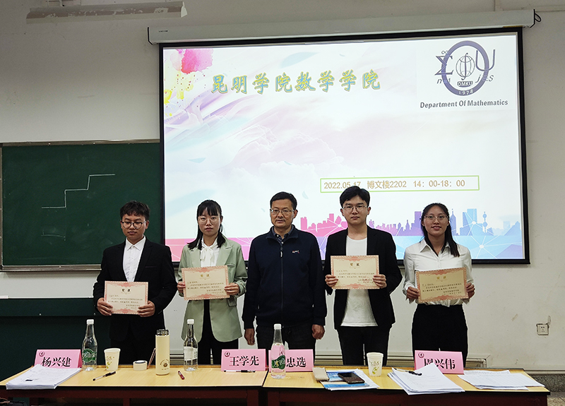 决赛邀请教育部师范认证专家、省级教学名师、云南财经大学附属中学校长王学先老师,云南省骨干教师谭忠选老师,全国教学比赛一等奖获得者杨兴建老师,五华区学科带头人、先进教育工作者杨磊老师,数学学院教师教育实训中心主任赵永光老师担任本次比赛的评委。