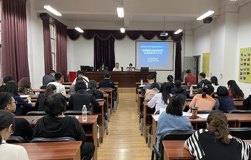 为进一步激发教师教书育人的责任感,扎实推进校风教风学风专项整顿工作,5月27日下午,医学院在医学楼负2103会议室组织开展师德师风和科研诚信专项教育活动,学院党政班子成员、全体教职工参加学习。