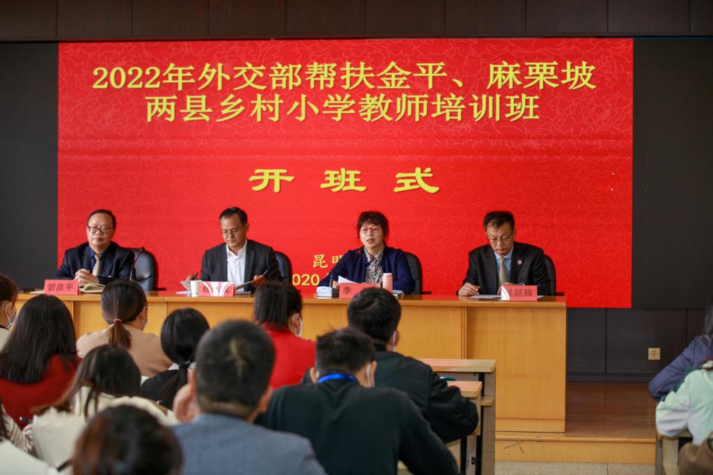 10月25日上午,2022年外交部帮扶金平、麻栗坡两县乡村小学教师培训班在beat365开班。云南省人民政府外事办公室副主任杨绍成、beat365官方网站党委副书记李莉、省政府外事办公室人事处及beat365继续教育学院的相关领导和职能部门的同志出席了开班仪式。开班仪式由继续教育学院院长管彦平主持。