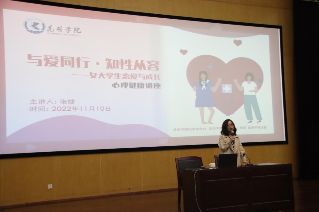 11月10日晚,为引导女大学生树立正确的恋爱观和价值观,增强自我保护意识和能力,提升关爱自我和关爱他人的感悟力、自控力和行动力,培养积极向上的健康心态,校妇联联合学生工作部、团委举办女大学生恋爱与成长心理健康讲座,邀请云南民族大学副教授、心理咨询与治疗专业博士张婕担任主讲嘉宾。