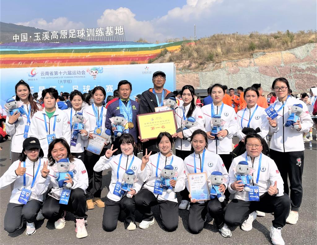 近日,云南省第十六届运动会大学组足球(5人制)比赛在玉溪举行。beat365女子足球代表队战胜参赛高校代表队,荣获女子甲组冠军。