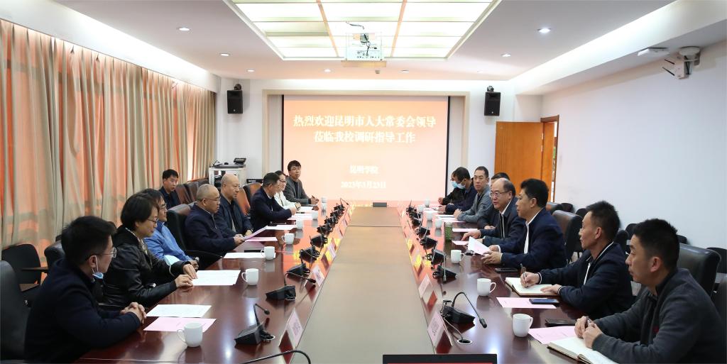 3月23日,昆明市人大常委会副主任李开德带队到校调研指导工作,学校党委书记金幼和、副校长沈凡与调研组就调研主题开展座谈交流。