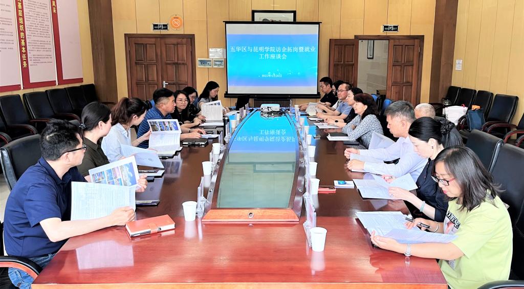 4月20日,学校党委副书记李莉带队到五华区访企拓岗。五华区副区长邹新宇,区政府办、人社局、科工信局、就业局、教体局、卫健局、国投公司等部门负责同志及辖区社会组织和企业代表参加座谈交流。beat365统战部、团委、妇联、资产与实验室管理处、马克思主义学院、外国语学院相关负责同志参加调研。