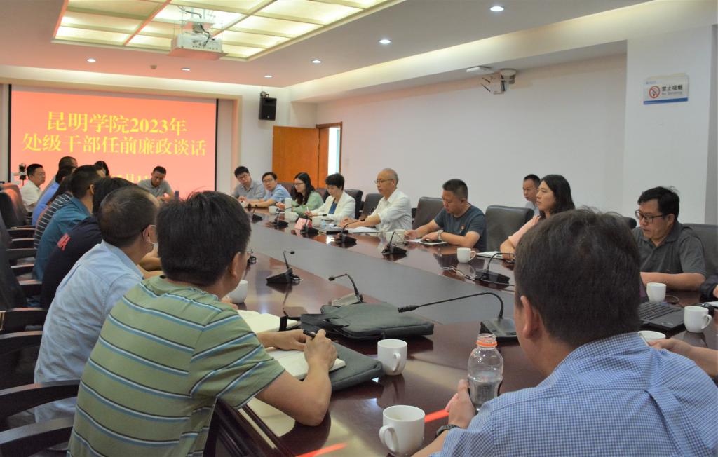 在集体谈话中,罗荣辉指出学校纪委、监察专员办组织任前谈话,主要目的是帮助大家认识形势、准确定位,担当有责、履职尽责,严格自律、做好表率,更好地促进学校建设创新发展。他围绕“懂得与感恩、守纪与奉献、自己干与带着干”主题,与新任职的22名同志开展集体廉政谈话,为即将走上新岗位的领导干部打好廉洁履职“预防针”,要求新任职干部:一是善学习,强能力;二是敢担当,做实事;三是严自律,树形象;四是懂组织,会算账。罗荣辉强调,领导干部要履行好全面从严治党主体责任或“一岗双责”,对职责范围内的人和事要真管真严、敢管敢严、长管长严。在新时代新征程的“赶考”路上,牢记习近平总书记的教诲,拒腐蚀,永不沾,做清清白白的人、做干干净净的事,团结带领党员干部为党的事业奋斗,为人民福祉奋斗,为美好昆院奋斗。陶军结合当前高校反腐败斗争形势,从坚定理想信念、保持敬畏之心、坚持慎独慎微、强化自律意识、牢记为民使命、严守党的纪律、树好个人形象等方面与科级干部作了交流。