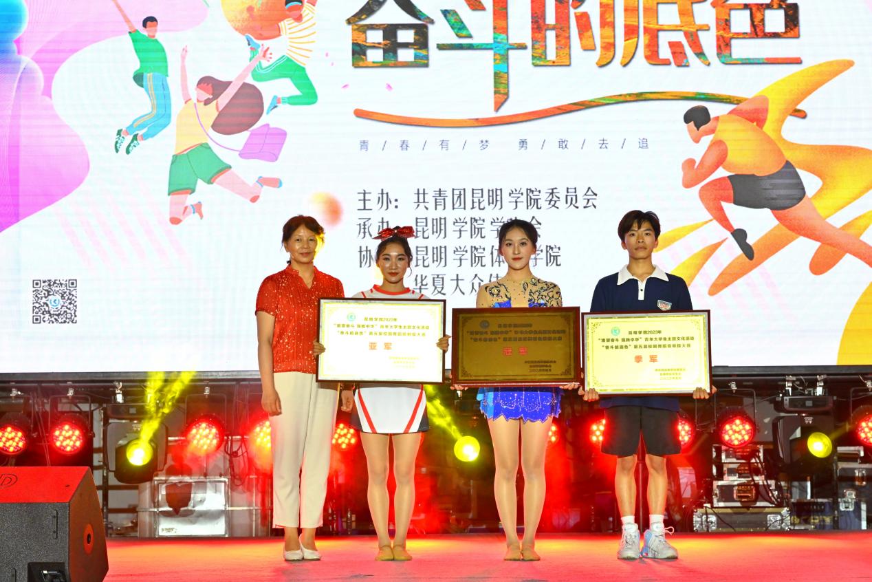 自4月上旬起,学校组织各二级学院开展“奋斗的底色”青年大学生主题校园啦啦操大赛,各二级学院认真组织、积极备赛,经过资格赛的激烈角逐,八支队伍进入决赛。决赛上,各支队伍的青年学生以舞动的身姿勾勒青年人阳光开朗的形象,用舞姿和激情表达昆院青年的梦想与奋斗。赛场下,观众们热情洋溢,高声呼喊,积极应援,为场上的同学们加油助威。最终,学前与特殊教育学院、体育学院、音乐舞蹈学院分获冠亚季军。