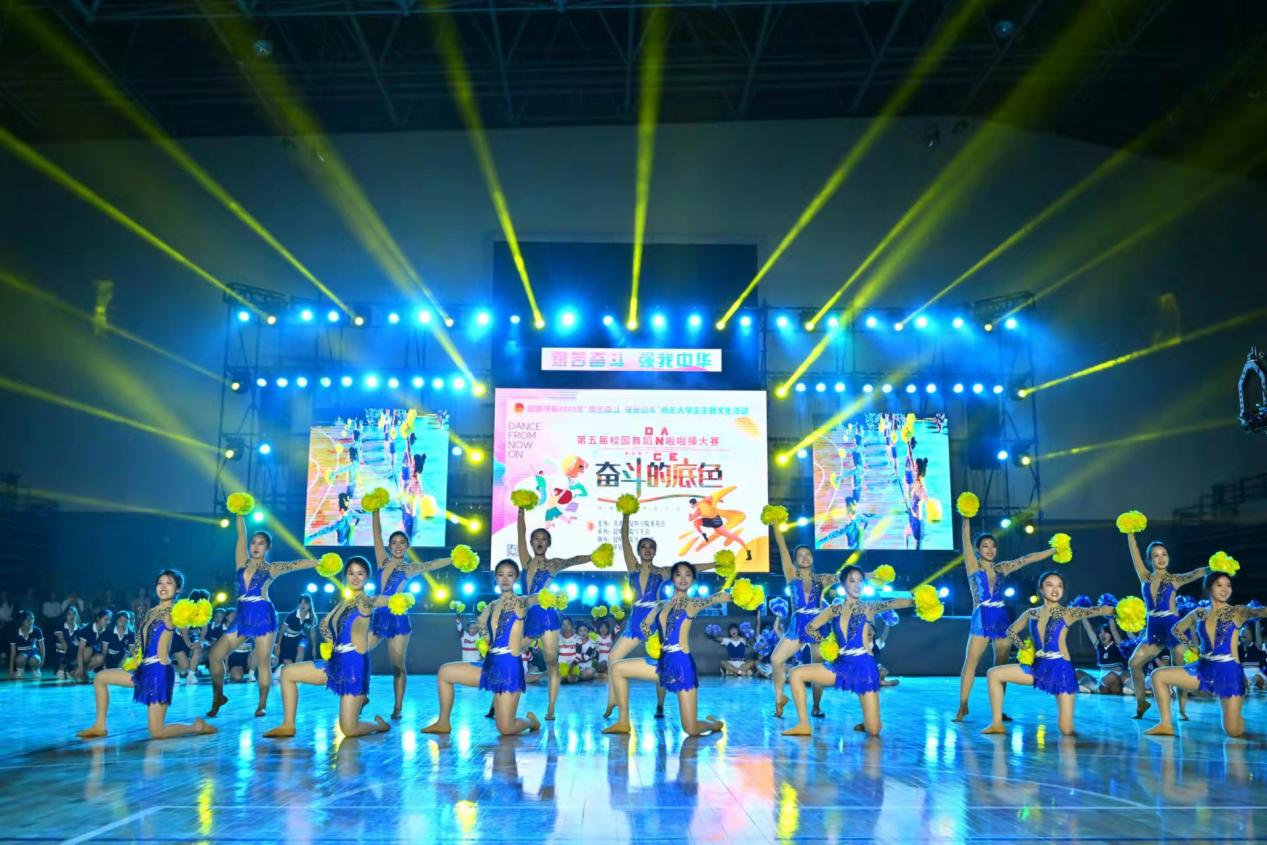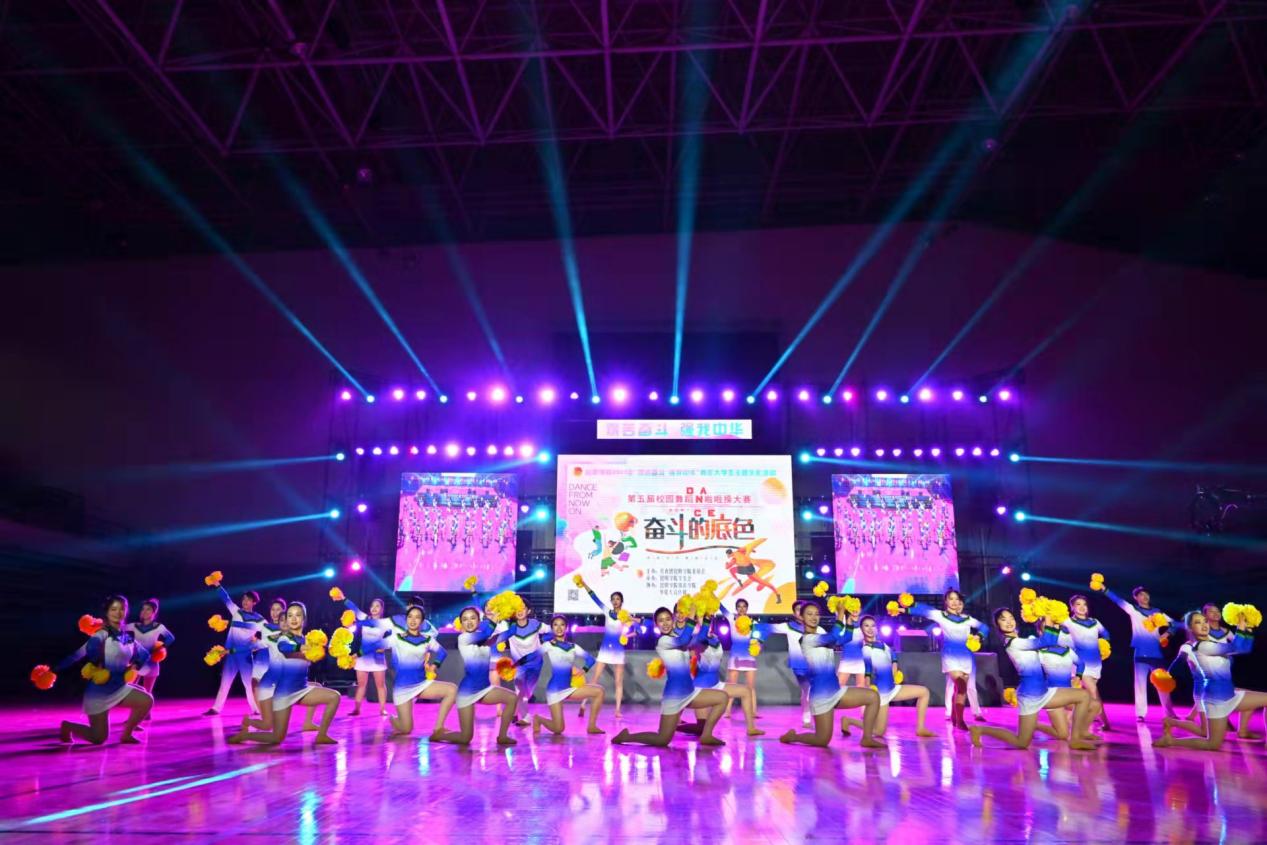 5月19日晚,beat365官方网站2023年青年大学生主题文化活动“奋斗的底色”第五届校园舞蹈啦啦操大赛在体育综合馆举办。学校党委副书记李莉出席活动,宣传部、学生工作部、校团委、体育学院等部门、学院负责人和各二级学院团委书记、青年学生代表共3000余人参加。