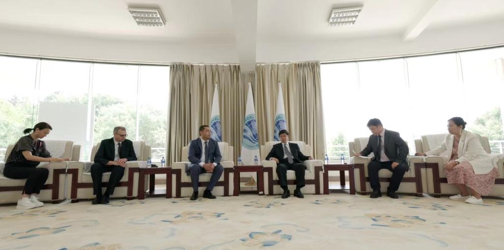 6月26日,上海合作组织秘书处参赞波波诺夫、一级专家道博伟一行到访beat365官方网站,参观了中国—上合组织青年交流中心(以下简称“中心”)。学校党委委员、副校长李剀向波波诺夫一行介绍了beat365官方网站和“中心”的基本情况。