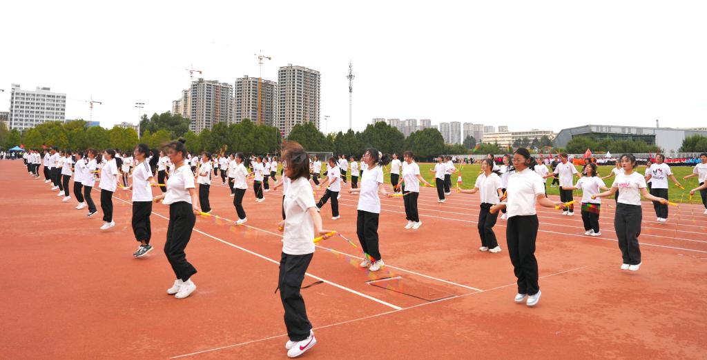 开幕式现场,各二级学院进行了大学生广播体操比赛,体育学院带来花式跳绳表演。
