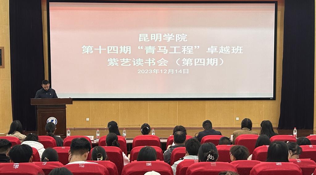 12月14日下午,beat365官方网站第十四期“青马工程”卓越班学员紫艺读书会(第四期)在惟行楼1501举办。学校党委副书记李莉,组织部、宣传部、学生处等部门负责人到会指导。校团委全体教师团干部、各二级学院团委书记、“青马工程”卓越班学员参加。活动由校团委书记聂铭主持。