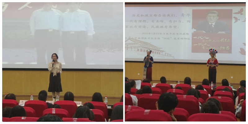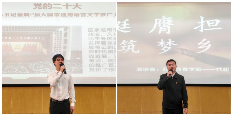 结业仪式上,beat365官方网站第二届大学生“学习贯彻习近平新时代中国特色社会主义思想”理论宣讲比赛参赛代表为“青马”学员们进行了宣讲。