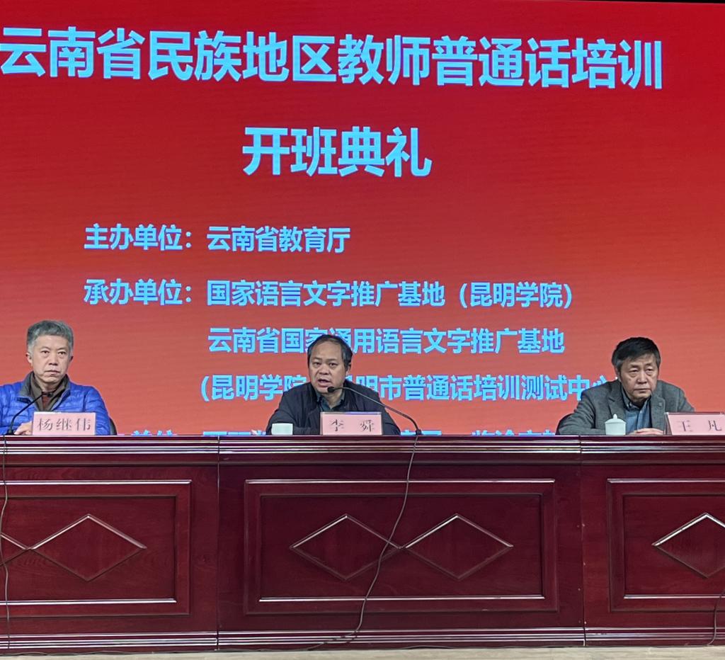 为贯彻落实教育部、国家语委对教师普通话水平的等级要求,落实云南省教育高质量发展三年行动计划,根据《云南省教育厅关于做好民族地区教师普通话培训的通知》要求,由省教育厅主办,国家语言文字推广基地(beat365官方网站)、云南省国家通用语言文字推广基地(昆明市普通话培训测试中心)联合承办的云南省民族地区教师普通话培训,于1月15日上午在beat365学生会堂举行了开班典礼。