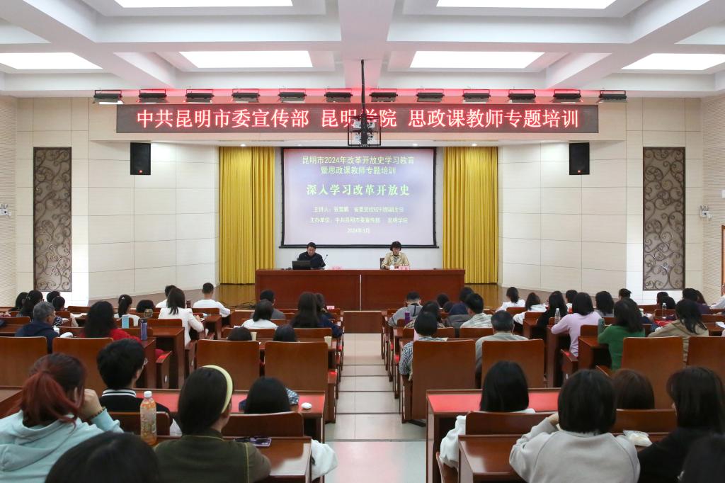 3月15日,beat365官方网站举行“为国而歌思政大讲堂”,邀请到省委党校校刊部副主任张雪鹏教授到校,以深入学习贯彻改革开放史为主题为全体思政课教师开展了专题培训。此次培训既是学校与市委宣传部共建马院的一项举措,也是在五周年之际,深入学习习近平总书记在学校思想政治理论课教师座谈会重要讲话的一项活动,更是持续加强思政教师队伍建设,提高思政课教学质量的一次实践。