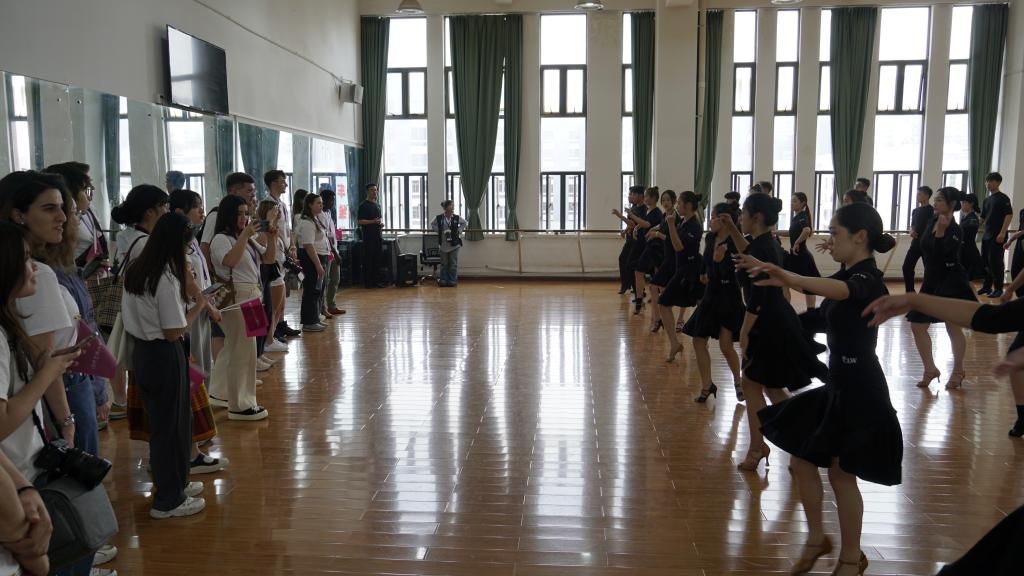 步入音乐舞蹈学院,大家观摩了拉丁舞教学和演唱教学,被舞者优美的舞姿和歌手动人的歌声吸引,深刻感受到了中国音乐舞蹈艺术的魅力,对中国音乐舞蹈文化有了更深刻的认识和了解。