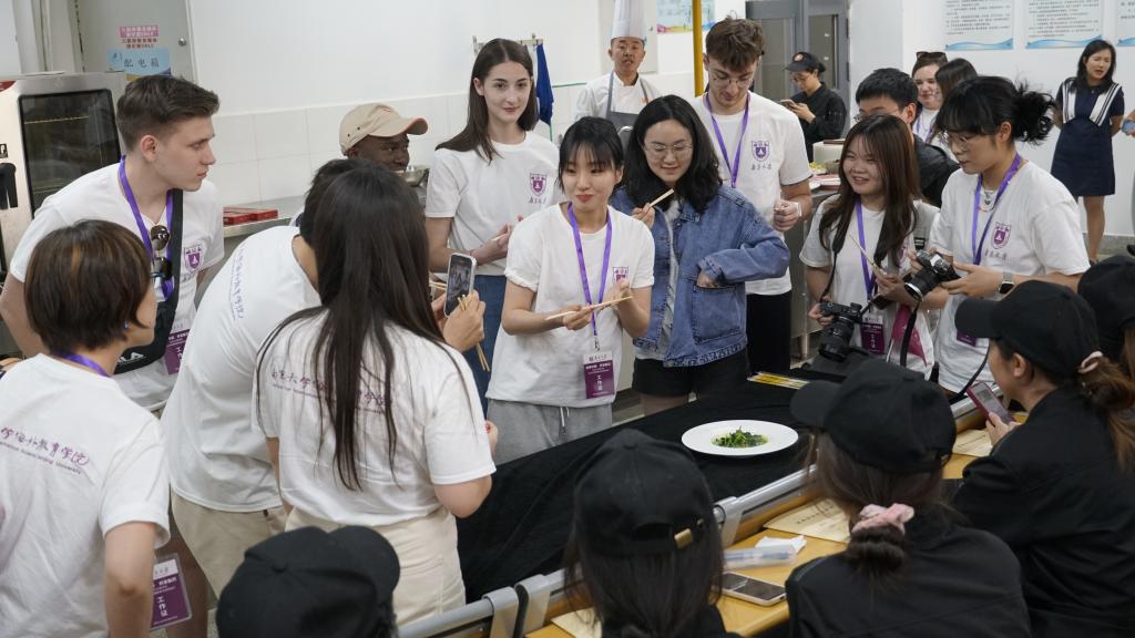 在旅游学院烹饪实训大楼,南京大学师生们体验了中式菜肴制作的魅力。他们跟随专业厨师学习烹饪技巧,了解了中国饮食文化的博大精深,通过制作中式菜肴,提高了烹饪技能,加深了对中国饮食文化的理解和热爱。