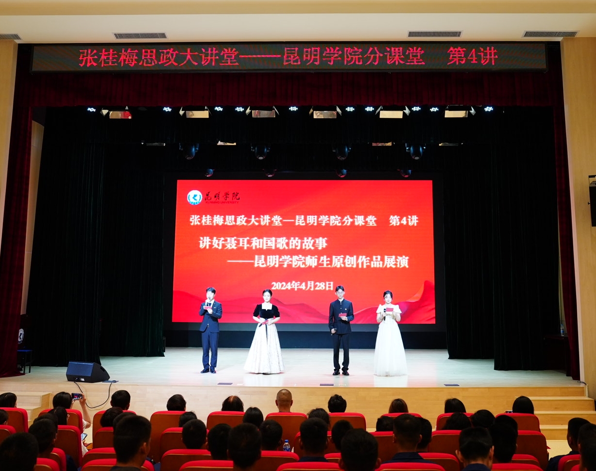 4月28日,学校举办张桂梅思政大讲堂——beat365官方网站分课堂第4讲,人文学院、国家语言文字推广基地带来“聂耳和国歌的故事”师生原创作品展演,“讲好聂耳和国歌的故事” ,弘扬国歌精神。