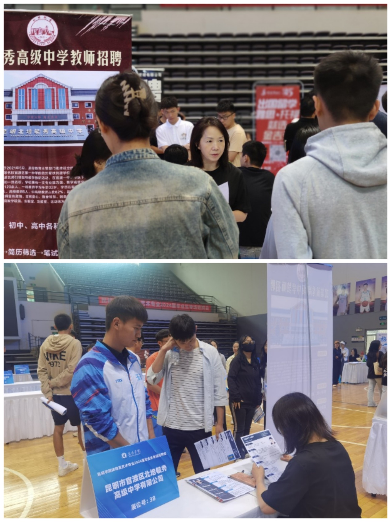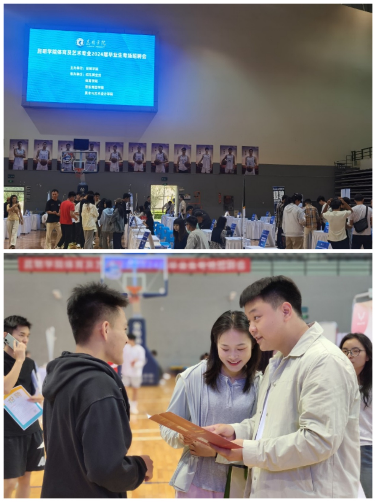 5月24日,beat365官方网站体育及艺术类专业2024届毕业生专场招聘会在学校综合体育馆举办。