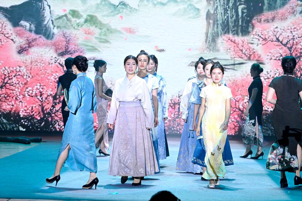 在学校“第五届‘金树莓’影视艺术节颁奖典礼暨2024届服装发布秀”活动中,女老师们身着马面裙和旗袍走上T台,在舞台上展示她们知性优雅、时尚端庄的气质和热爱生活、积极向上的精神风貌。