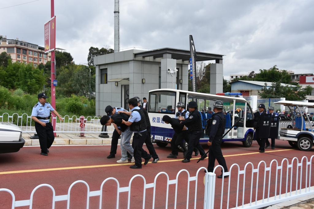 演练模拟了外来人员在校开车肇事逃逸,学校安保人员将其追捕并移送公安机关的情景。李学再副所长对本次演练给予了高度评价,表示此次演练准备充分、组织有序、反应迅速、处置得当,充分反映了学校对反恐工作高度重视。