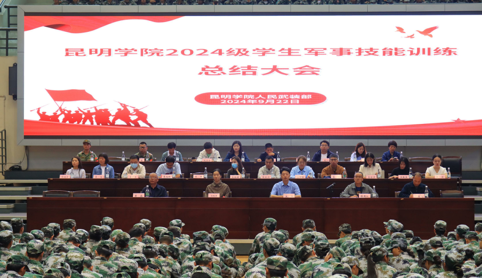 9月20日上午,2024 级本科新生军事技能训练成果展示在学校田径场进行。官渡区人民武装部部长上校曾宪华,学校党委副书记李莉、党委委员、副校长彭志远等领导出席。学校各相关职能部门负责人、二级学院党政主要领导、辅导员、教官及全体 2024 级本科新生参加。此次成果展示由彭志远副校长主持。