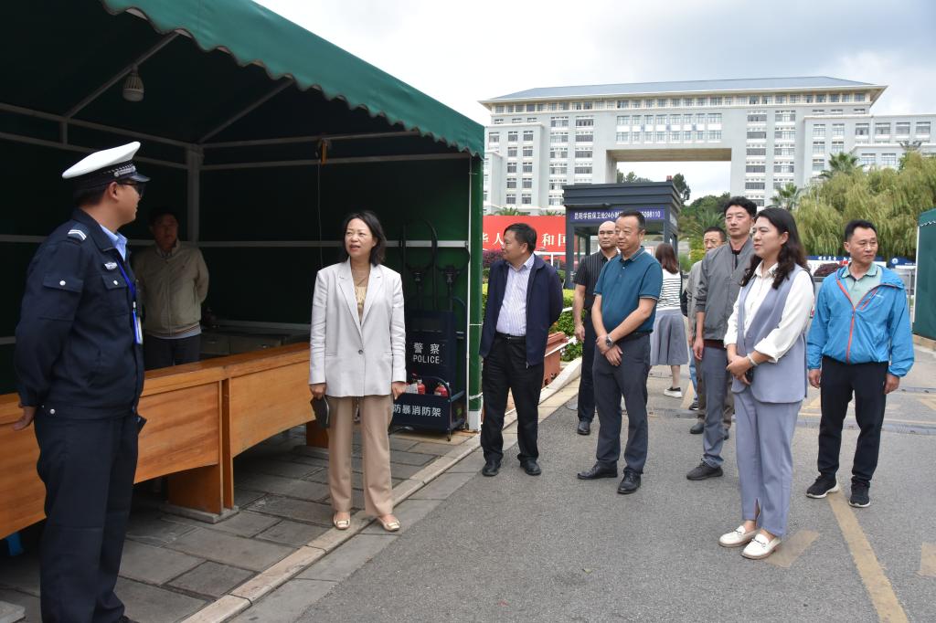 为保障学校2024年国庆节假期间校园安全和稳定。9月29日上午,学校党委副书记、校长丁文丽率队,党委委员、副校长彭志远和相关职能部门组成安全检查组深入校园开展国庆节前校园安全大检查。