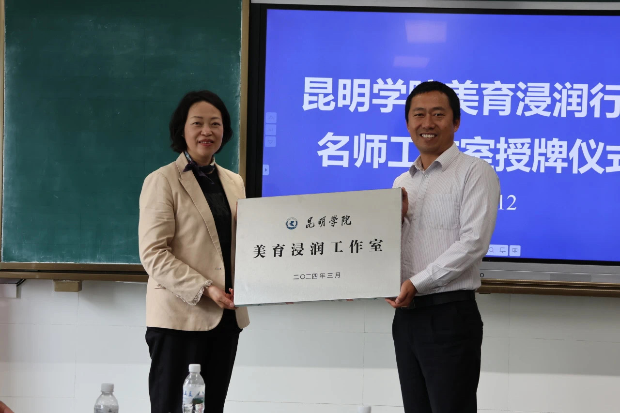 丁文丽校长为河口县民族中学颁授“美育浸润工作室”牌匾