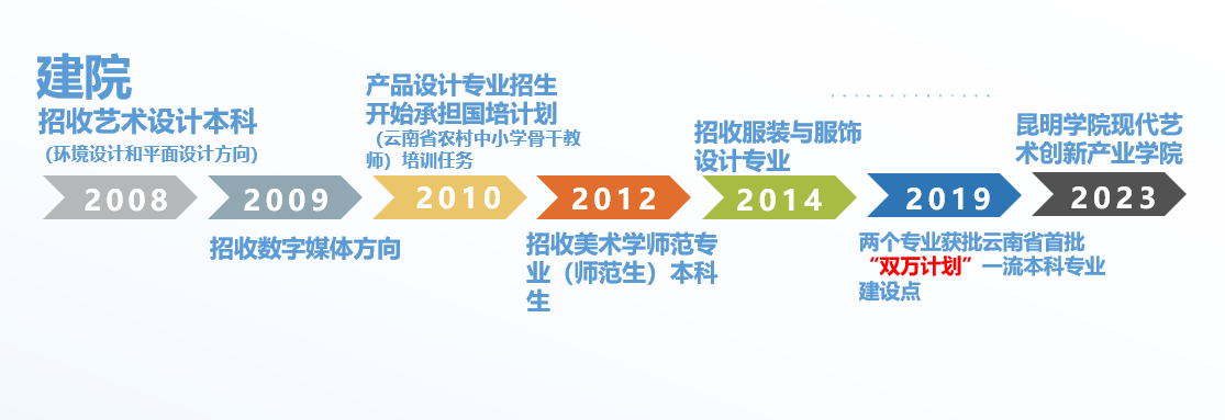 2023年,在学校的大力支持下,以培养服务云南的文化创意设计及相关领域的高素质产业人才为目标,依托美术与艺术设计学院设计学相关专业,建设beat365官方网站现代艺术创新产业学院,2024年开始招生。
