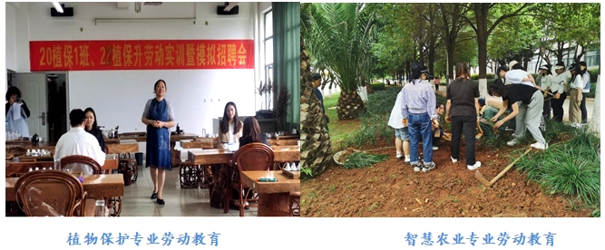学院自办学以来始终坚持德智体美劳“五育”融合,促进学生全面而有个性地发展。结合实际,学院制定出“五育”综合素质测评管理办法,将劳动教育融入学生实习实训全过程,实现学生的全面发展。例如,实训基地管理委员会组织学生参加生产劳动,动物医学专业学生参与养殖场动物的免疫接种、圈舍卫生清扫等;园艺专业学生进行蔬菜地杂草清除、耕犁实践等;植物保护专业学生参与园区景观提升的劳动、蔬菜的直播、育苗等。学生在劳动中不仅能感受到喜悦和成就感,也增强了专业实践和创新创业能力。