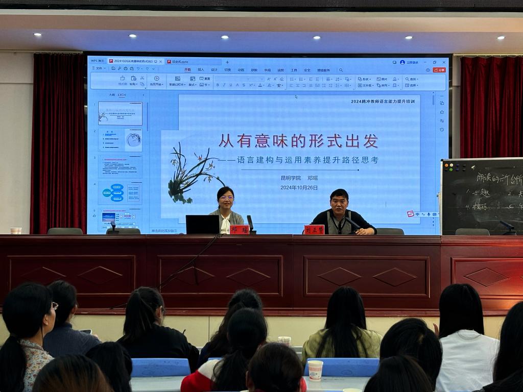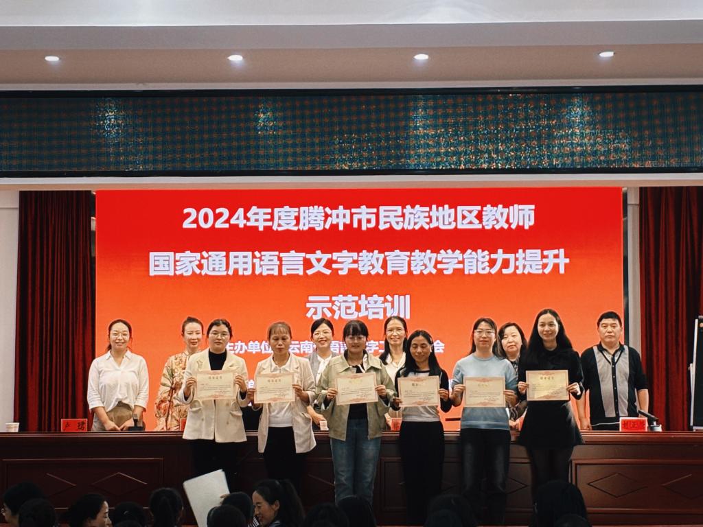 10月26日-27日,beat365国家语言文字推广基地教学团队一行5人赴腾冲市,与腾冲市教育体育局共同举办了2024年腾冲市民族地区教师国家通用语言文字教育教学能力提升示范培训。来自腾冲市中小学和幼儿园的100名教师参加了此次培训。围绕参训学员的实际需求和现有普通话水平,培训设置了“普通话测试达标”“教师口语能力提升”与“国家通用语教育教学能力提升专题讲座”三个模块,结合学员在日常教育教学中对普通话的实际运用情况,从普通话的规范度、自然度以及有声语言表达艺术的层面,开展了多维度、多模块递进式培训。