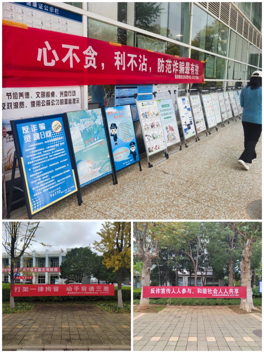 11月1日,保卫处、学生处联合昆明市公安局国家经济技术开发区分局昌宏路派出所,在润泽苑学生食堂门口举办beat365官方网站“护航青春 平安校园”2024年安全法治暨反诈宣传教育活动。昌宏路派出所符桐荧警官一行、学生处处长王涛,保卫处副处长张智益、撒召辉及相关人员参加活动。