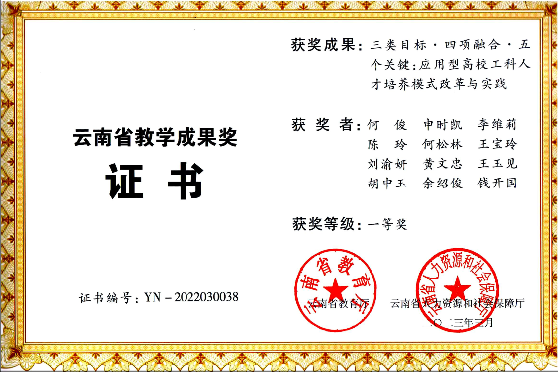 面向新工科定位,按四个专业梳理课程知识体系,实施特色鲜明的专业人才培养方案,以计算机系统能力培养、软件工程“3+1”人才培养、云南省一流本科物联网工程专业建设和工信部大数据应用专精特新产业学院建设为引领,形成“大类培养为基础,分类培养显特色”的机制。课堂教学中增加使用面广且原理独特的内容,摒弃陈旧过时内容,根据布鲁姆教育目标分类原则,制定课程原子知识点和教学目标对照表,产出课程知识图谱。开展混合式教学、翻转课堂等方式促进课堂教学组织形式更新,提高学生学习的主动性。近三年获批校级以上一流课程27项,教育部产学合作协同育人项目、云南省本科教育教学改革项目等各级各类教学研究改革项目48项,构建了效果显著的人才培养模式和环境。“三类目标・四项融合・五个关键:应用型高校工科人才培养模式”获得云南省高等教育教学成果一等奖。