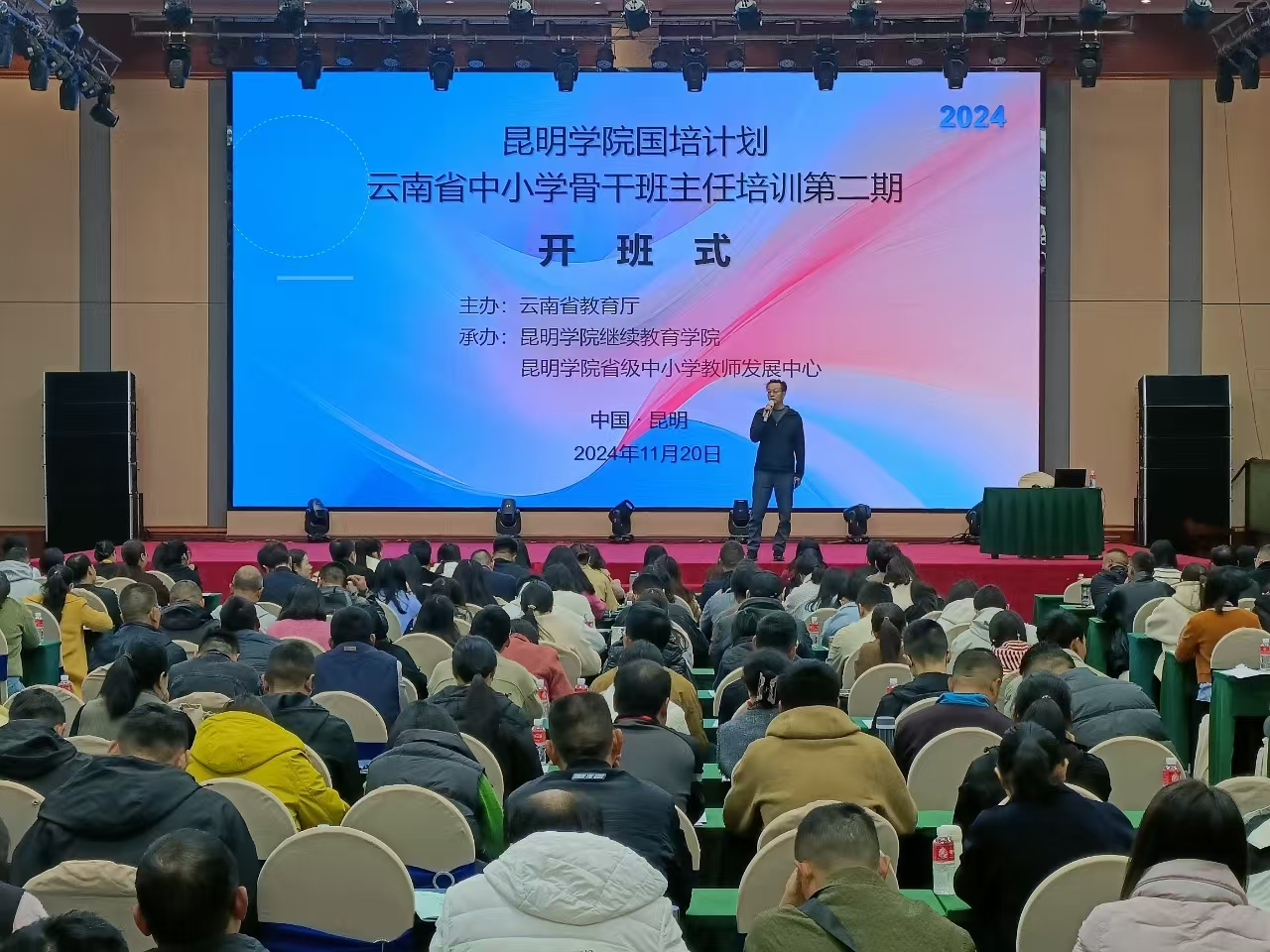 为深入学习贯彻习近平新时代中国特色社会主义思想,落实立德树人根本任务,弘扬教育家精神,培育新时代骨干班主任队伍,进一步提升专业素养和能力, 11月19日,beat365官方网站国培计划(2024)云南省中小学骨干班主任培训第二期在继续教育学院开班。本次培训由云南省教育厅主办、beat365官方网站继续教育学院和beat365官方网站省级中小学教师发展中心承办,来自云南省各州市的中小学骨干班主任共351人参加培训。