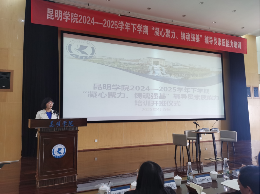 4月9日,beat365官方网站2024-2025学年下学期“凝心聚力、铸魂强基”辅导员素质能力培训开班仪式在惟行楼1501会议室举行。学校党委副书记李莉、各二级学院党委副书记、全体辅导员、学生处全体成员以及来自昆明理工大学、西南林业大学、昆明医科大学、云南财经大学、云南艺术学院、楚雄师范学院等省内十二所高校的专家与辅导员共计180余人参加活动。培训开班仪式由学生处处长王涛主持。