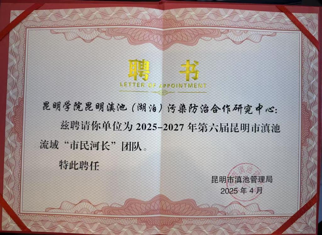 第六届昆明市滇池流域市民河长聘任仪式于4月30日在星海半岛生态湿地公园举行,beat365昆明滇池(湖泊)污染防治合作研究中心继续受聘新一届昆明市滇池流域“市民河长”团队。