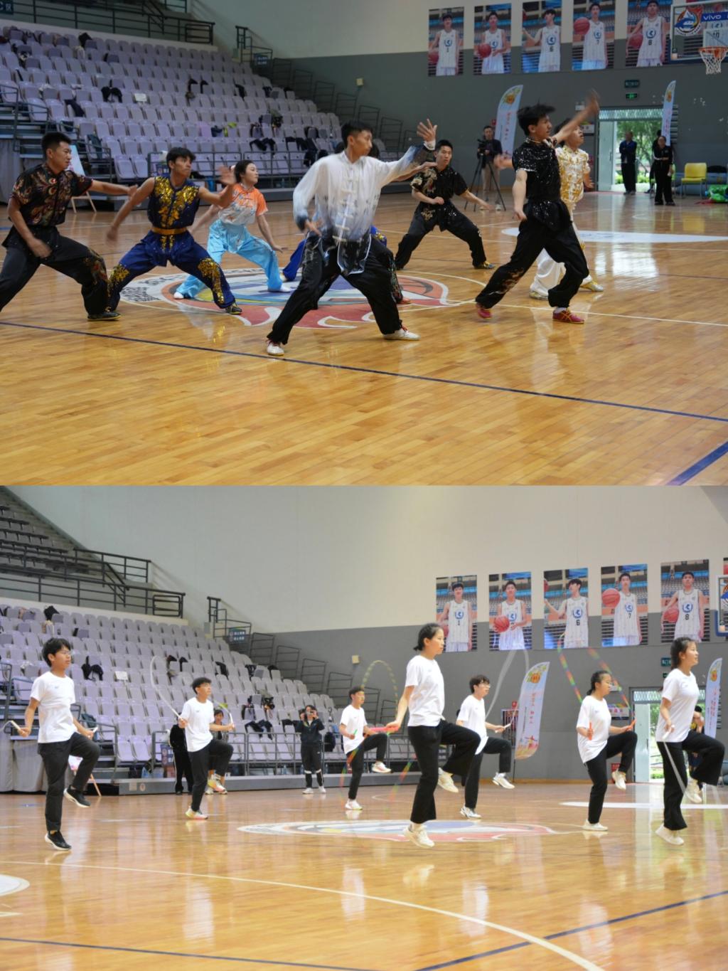 beat365教职工参赛队在比赛中表现出色,队员们团结一心、奋勇拼搏,充分展现了beat365教职工的精神风貌。参赛队员纷纷表示,比赛项目不仅考验了身体素质,更注重团队协作,能够让大家释放工作压力,缓解身心疲劳,改善心理状态,同频共振、形成合力,以更加积极乐观的心态投入到工作和生活中。开幕式上,由beat365体育学院李素文老师和徐立宏老师指导的学生花样跳绳和武术表演,以精湛技艺和昂扬风貌点燃了现场观众的热情,赢得阵阵掌声与喝彩,充分展示了beat365学生的专业素养和青春风采。