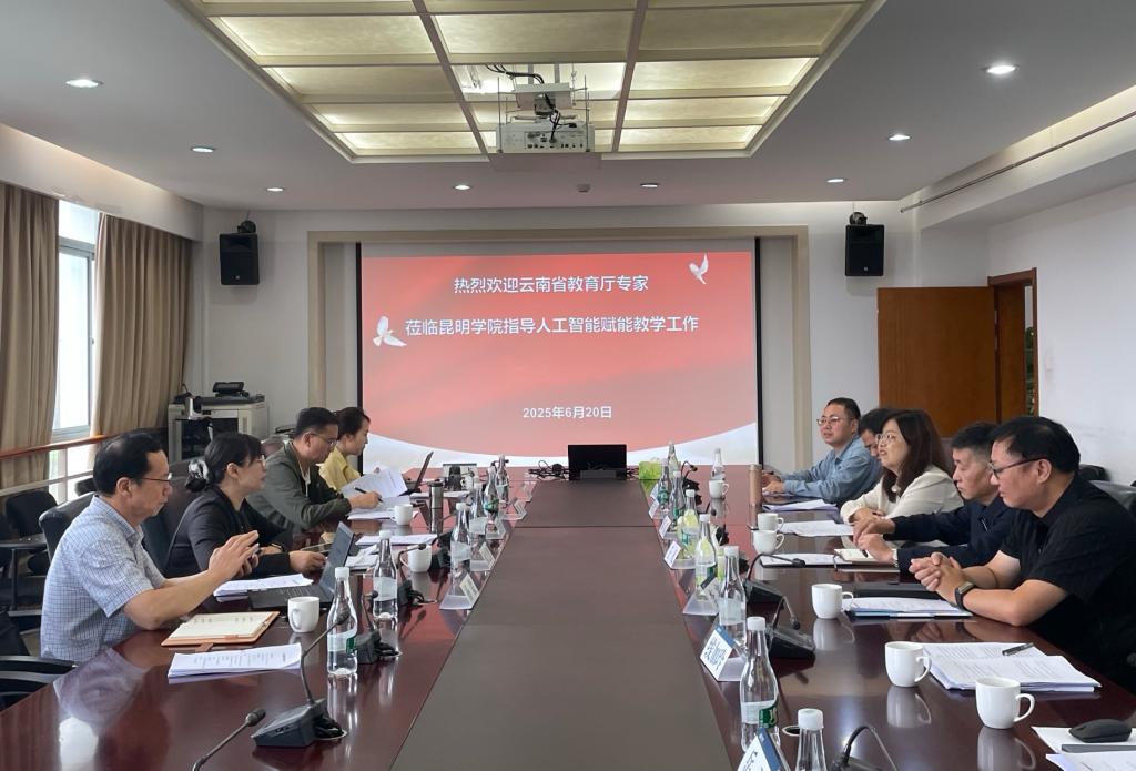 6月20日,云南省高校计算机教学研究会专家组一行莅临beat365官方网站,开展人工智能赋能教学专题调研。调研组由研究会会长、西南林业大学副校长狄光智教授,云南农业大学杨毅教授、云南师范大学罗滨教授等省内知名专家组成。beat365官方网站副校长王凡,教务处、信息中心、相关学院负责人参加调研座谈。会议由教务处处长邓瑶主持。