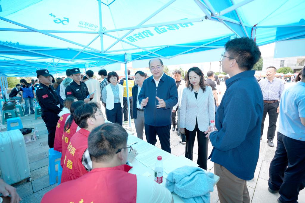 在学校南门、博雅楼新生接待处,校领导查看了各学院临时接待点、迎新氛围营造、校门口交通疏导等工作开展情况,详细了解各学院新生报到流程、入学保障和实际报到情况;并向现场工作人员和学生志愿者表示慰问。随后,校领导一行来到来到医学院、美术与艺术设计学院、外国语学院等学院新生入学点,详细了解新生报到人数及各学院迎新准备及工作进展。金幼和强调,各二级学院、相关职能部门要以生为本、细化分工、优化服务,确保迎新各环节无缝衔接、高效运转;要紧盯关键节点排查隐患,筑牢安全防线;要注重人文关怀,主动回应新生及家长关切,展现学校育人温度。